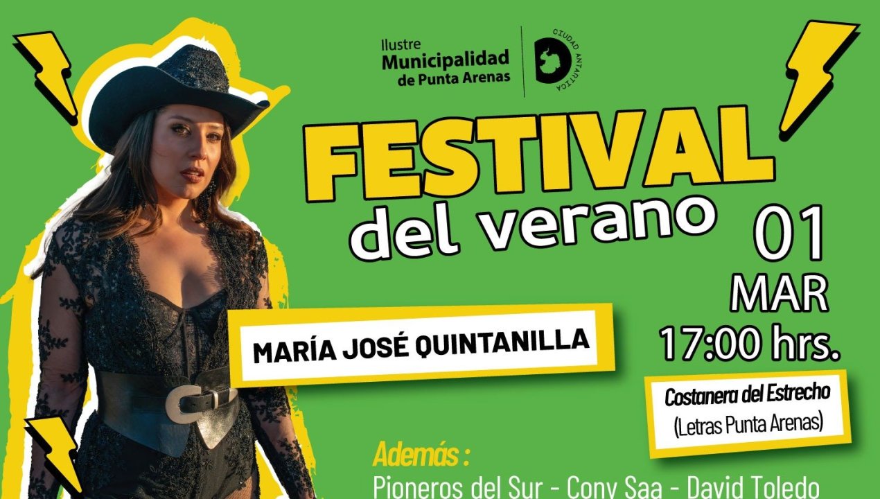 La Municipalidad de Punta Arenas lanzó oficialmente la programación del Festival de Verano 2026, actividad que se realizará este domingo 1 de marzo, desde las 17:00 horas, en la Costanera del Estrecho, sector de las letras Punta Arenas.